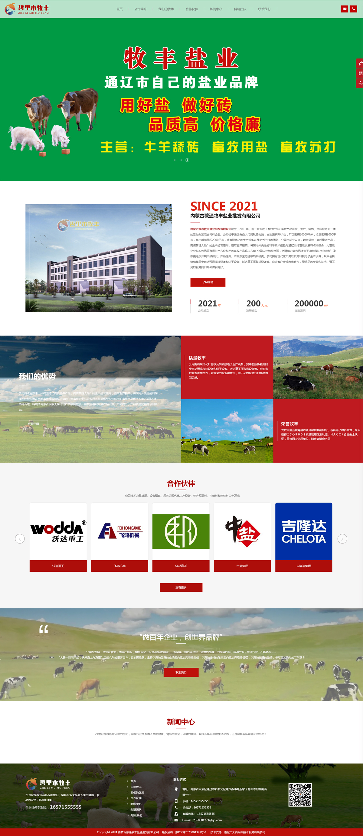 內(nèi)蒙古蒙通牧豐鹽業(yè)批發(fā)有限公司成立于2021年,是一家專注于畜牧產(chǎn)品和畜牧產(chǎn)品研發(fā)、生產(chǎn)、銷售、售后服務(wù)為一體的添加劑預(yù)混合飼料企業(yè)。公司位于通遼市南大門民航路南端,占地面積70余畝,廠區(qū)面積20000平米,庫(kù)房面積9000平米,其中暖褲面積2000平米,擁有現(xiàn)代化的生產(chǎn)設(shè)備以及優(yōu)秀的技術(shù)團(tuán)隊(duì)。